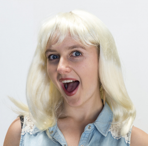 This 1960’s flamboyant Sandy style short blonde wig with fringe would make a great additional to your 60’s fancy dress costume.