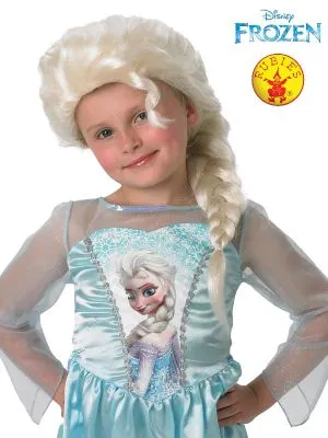 An ‘Elsa’ themed fancy dress party wig that has a long blonde plait with no fringe.