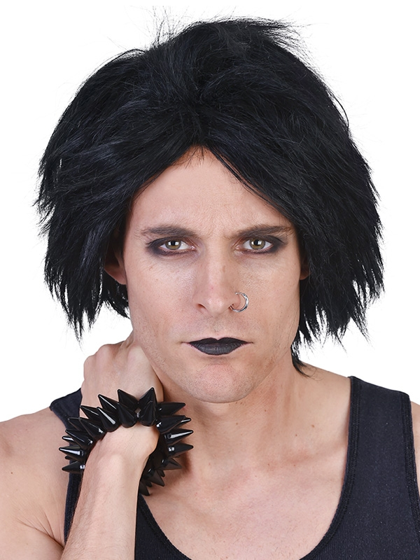 A fancy dress party wig when you want to be an Emo or Gothic character, that is a spiky layered wig in Emo black.
