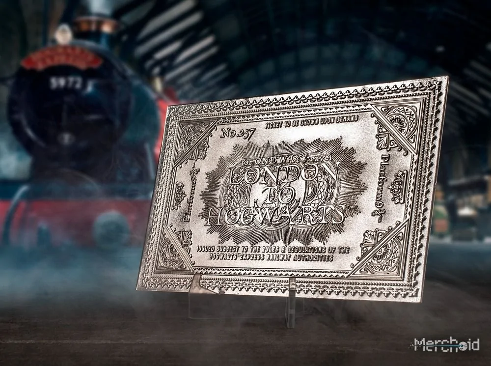 A .999 silver plated metal replica of the Hogwarts train ticket. This is the ultimate officially licensed Harry Potter collectible.