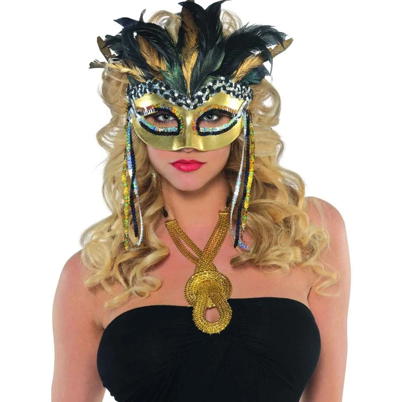MASK – GOLD & BLACK FEATHER WARRIOR MASK