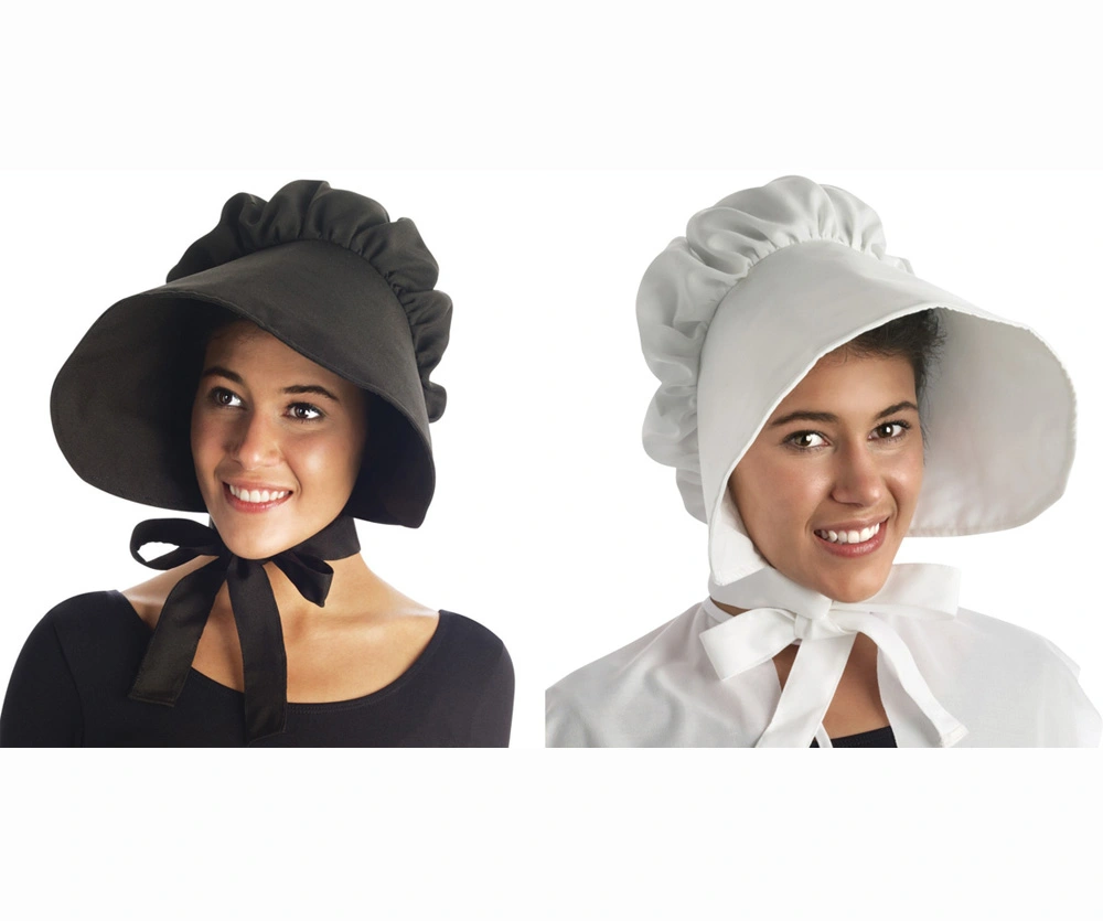 Very popular in the 17th & 18th centuries these Pilgrim Bonnets were used to protect the hair from wind & dust and were worn by woman and girls. So if your looking to dress up in traditional old English, Scottish or New American Praire style these fancy dress bonnets in white will do the trick!