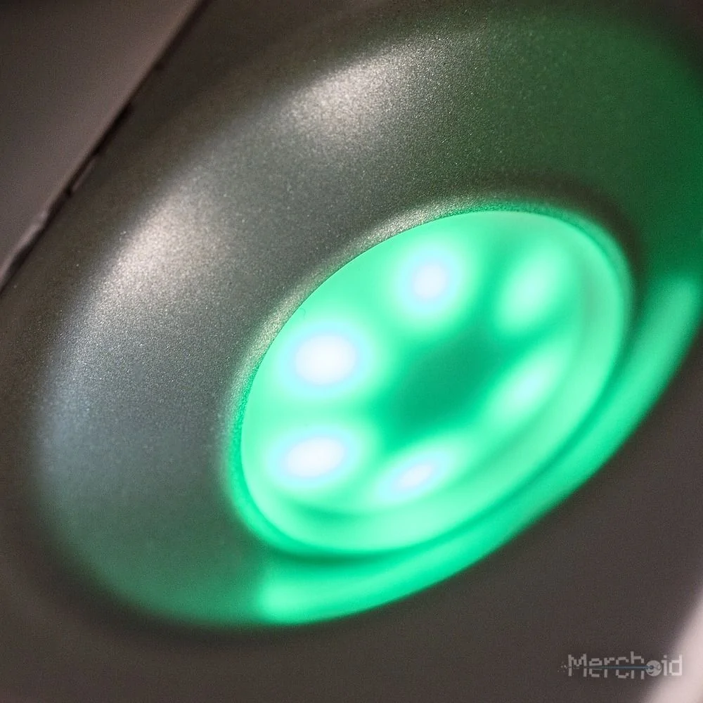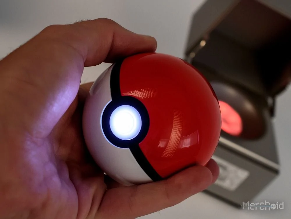 Equipped with proximity-sensing technology, the Poké Ball’s button glows when it senses motion; pressing the button changes the light color or starts a Pokémon-catching illumination sequence.