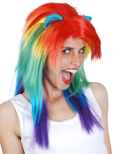 Be the life of the party with this very cool multi coloured wig with ears. One size fits most
