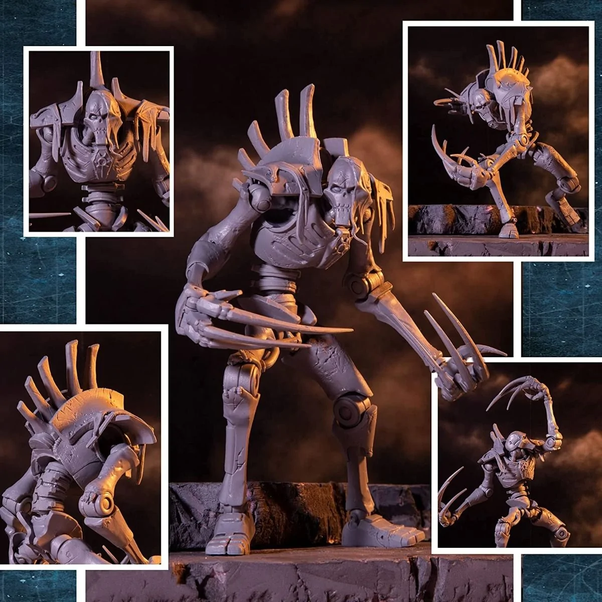 Flayed Ones are Necrons who have been infected and succumbed to the Flayer Virus of the C’tan Llandu’gor. They wear and decorate themselves with the skin and body parts of their opponents.